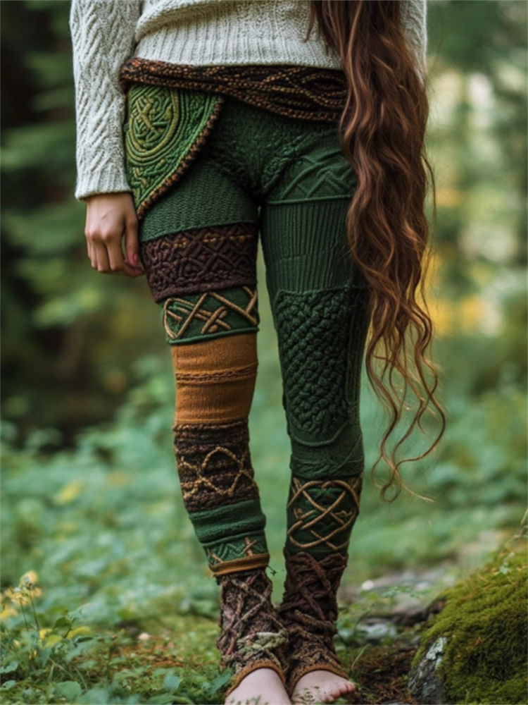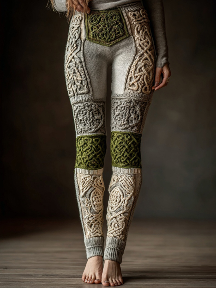 Vintage Contrast Color Viking Celtic Cozy Knit Leggings