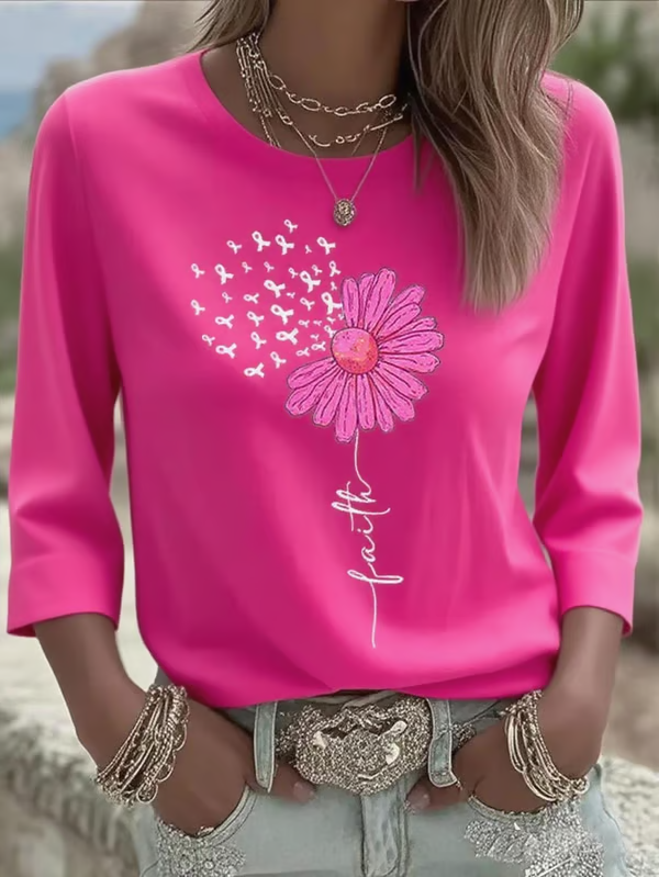 Women's Breast Cancer Faith Printed Three-Quarter Sleeve Round Neck T-Shirt