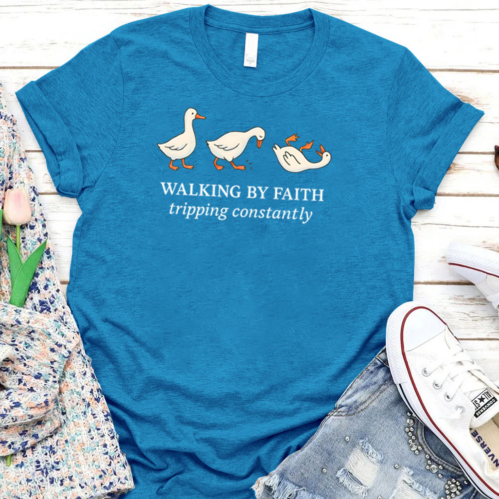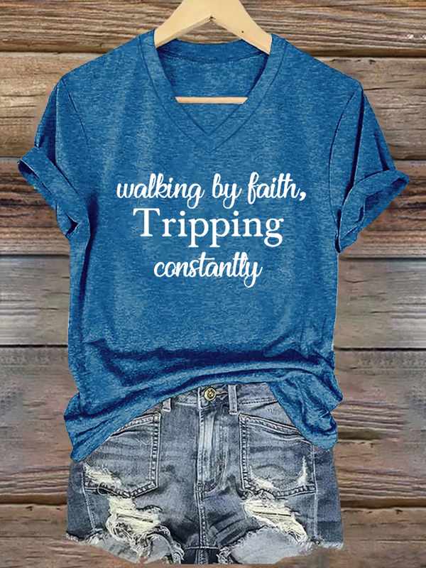 Women'S Walking By Faith Tripping Constantly Print V Neck Casual T-Shirt