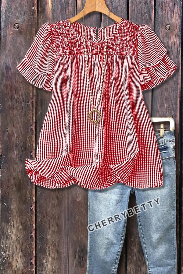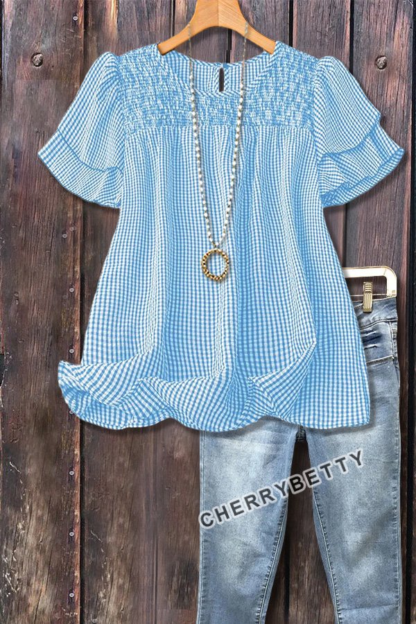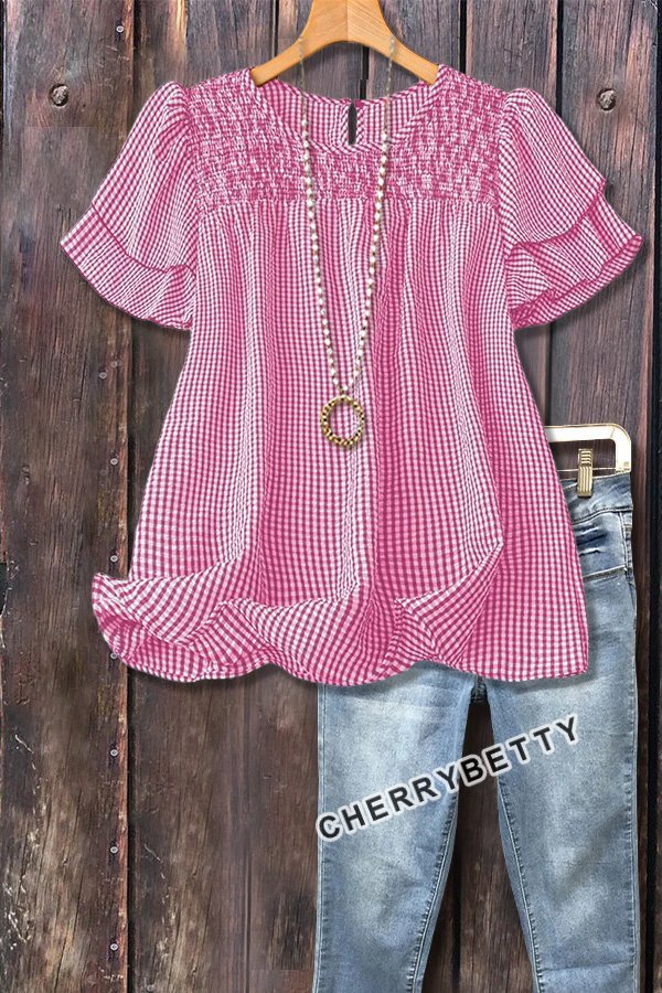 Casual Checkered Tiered Short Sleeve Top