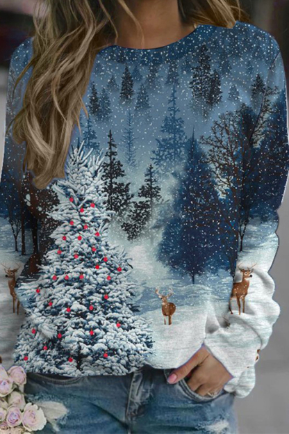 Christmas Print Crew Neck Long Sleeve Sweatshirt