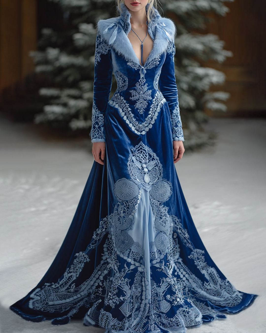 Christmas Themed Snow Queen Velvet Collar Dress 4546