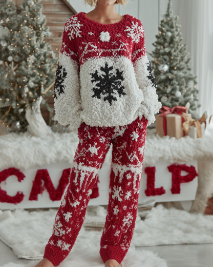 Christmas Themed Embroidered Knit Sweater and Pants Two-Piece Set 1895