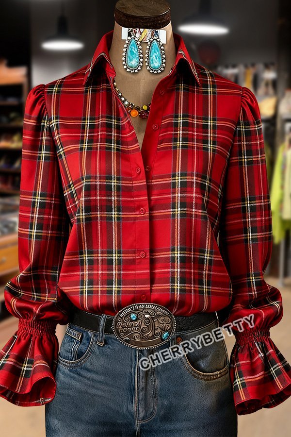 Classic Plaid Print Long Sleeve Top