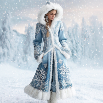 Classy Snowflakes Beaded Gradient Fur Trim Cozy Long Cardigan