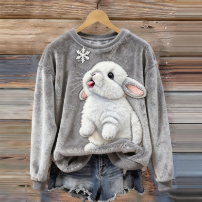 Cute Bunny & Snowflake Embroidered Cozy Plush Sweatshirt