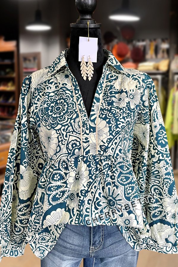 Floral Print V-Neck Long Sleeve Blouse