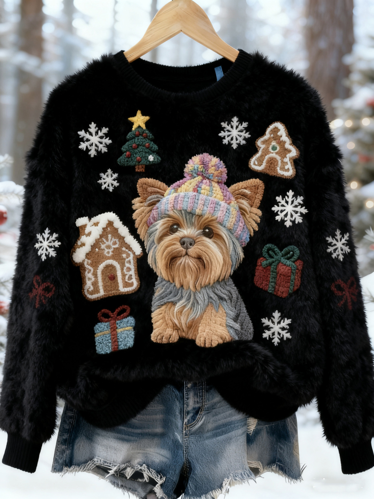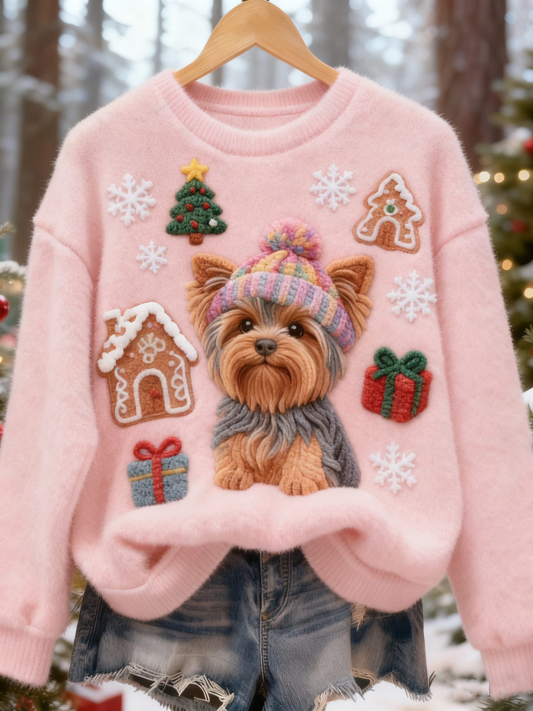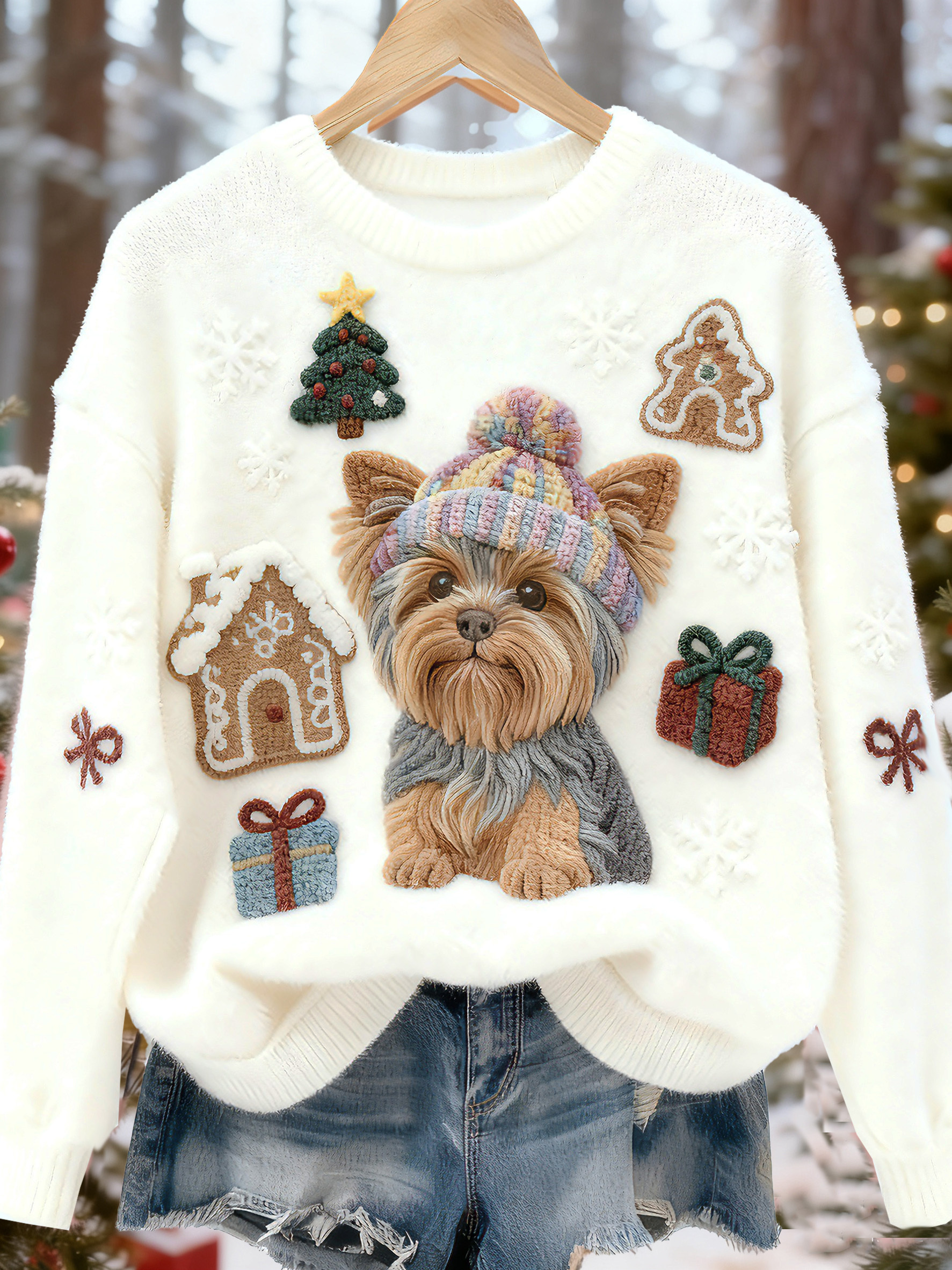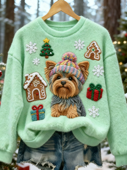 Funny Christmas Cute Dog Art Casual Cotton Plush Sweatshirt