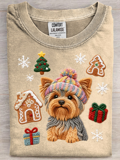 Funny Christmas Cute Dog Art Print Casual Cotton Short Sleeve T-shirt
