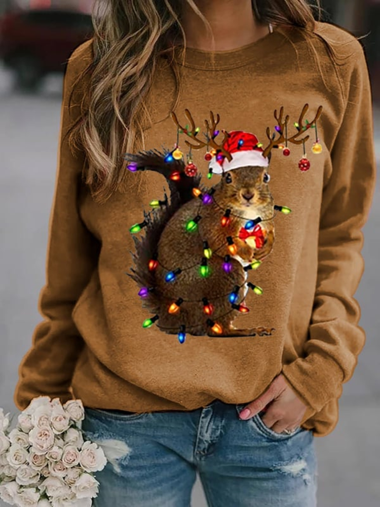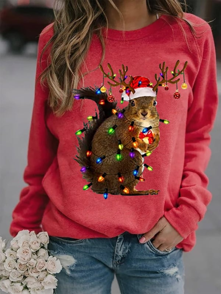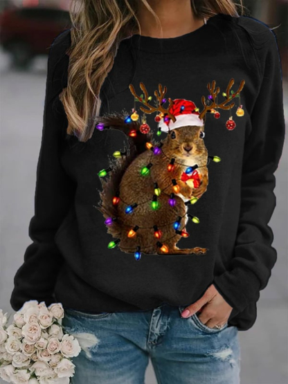 Funny Christmas Squirrel Lights Print Sweatshirt