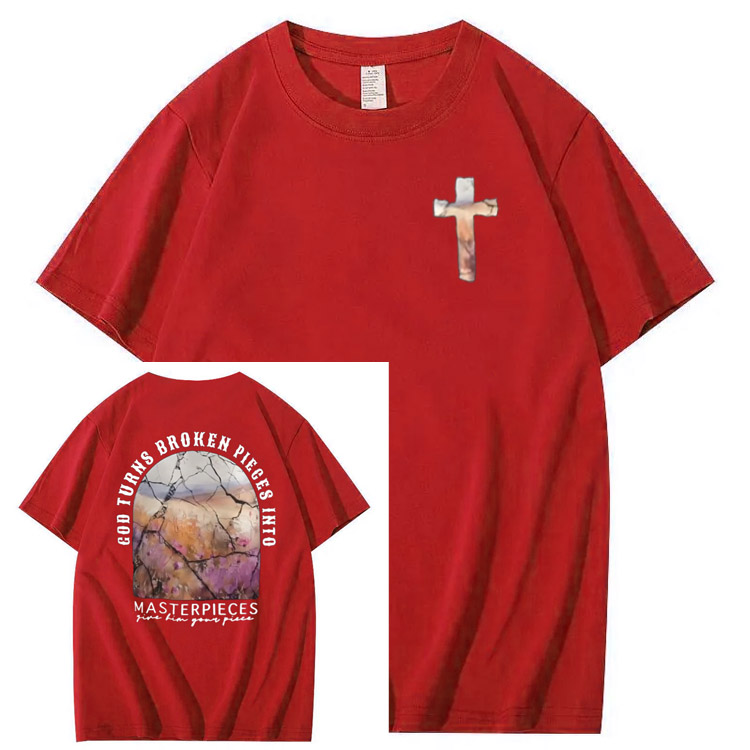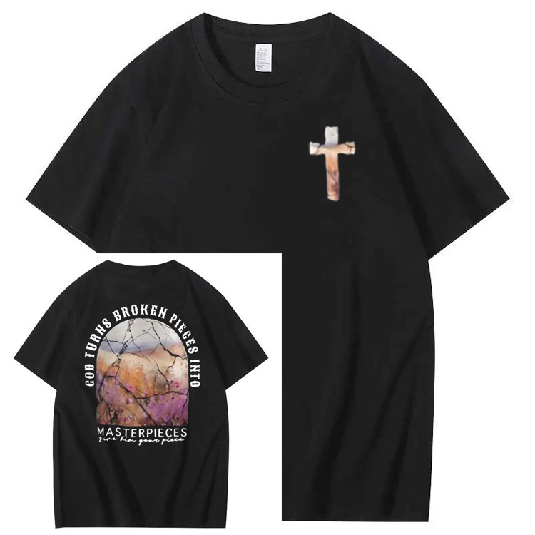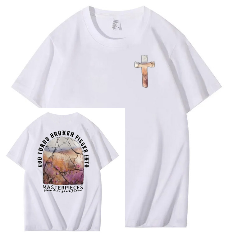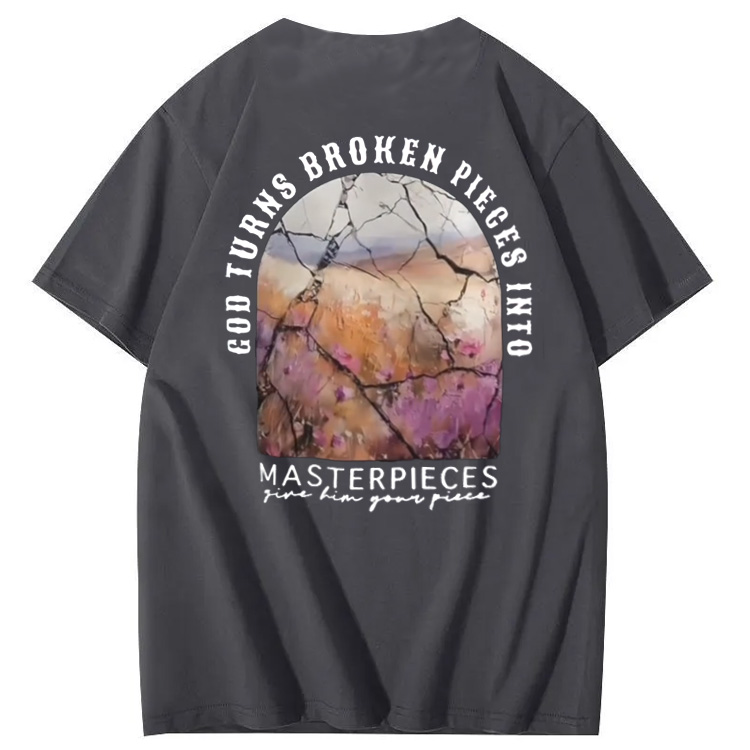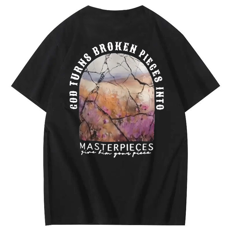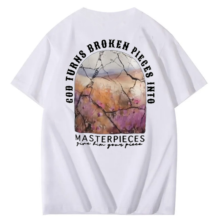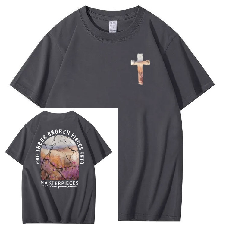 God Turns Broken Pieces Into Masterpieces Christian Pattern Crew Neck T-Shirt