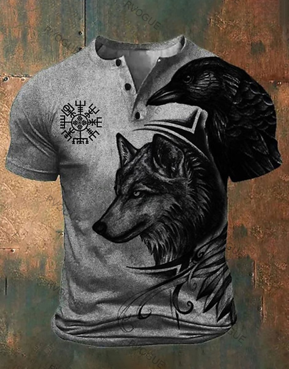 Graphic Wolf Viking Fashion Retro Classic Men's 3D Printed T-Shirt