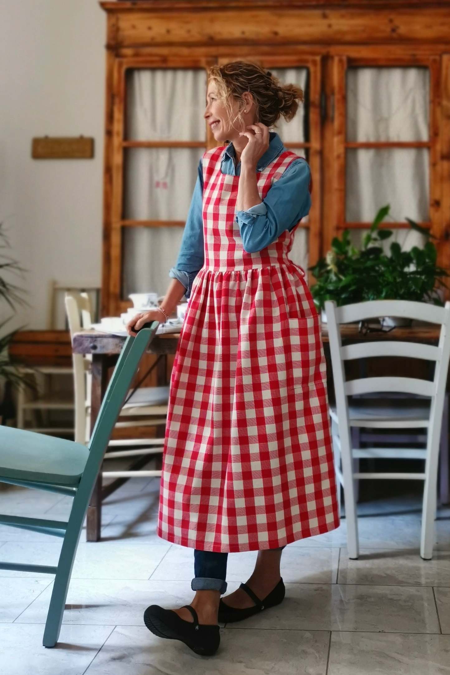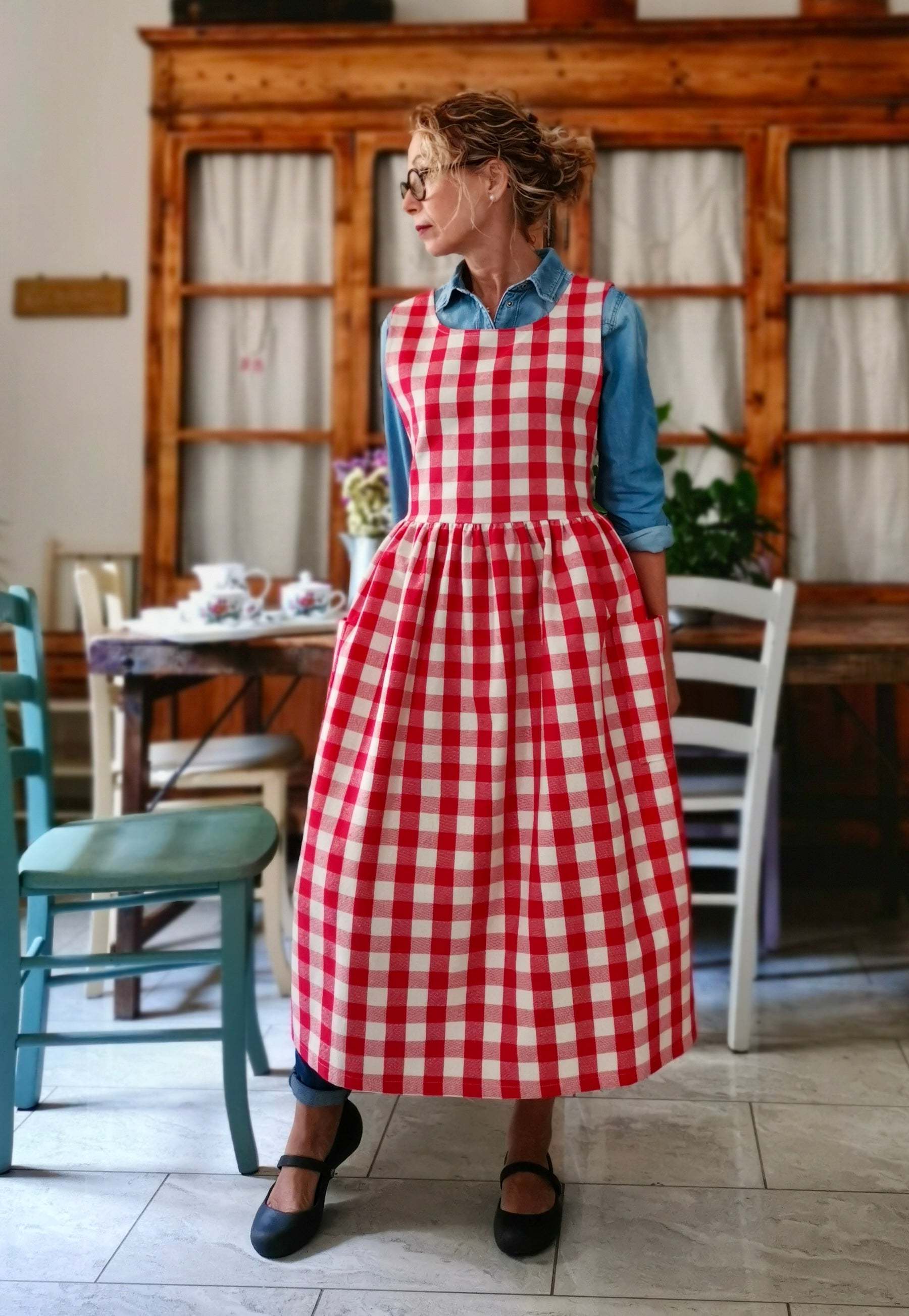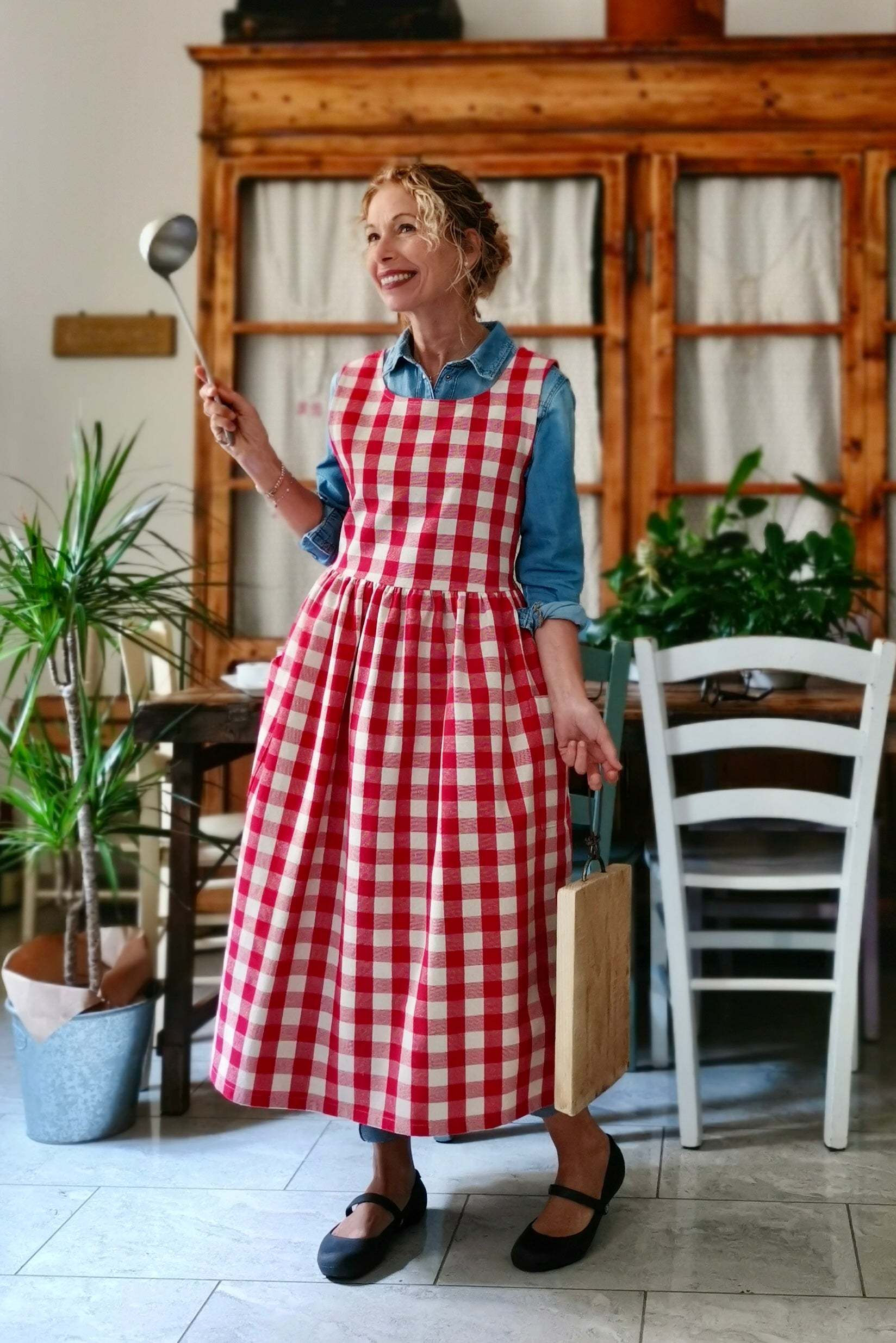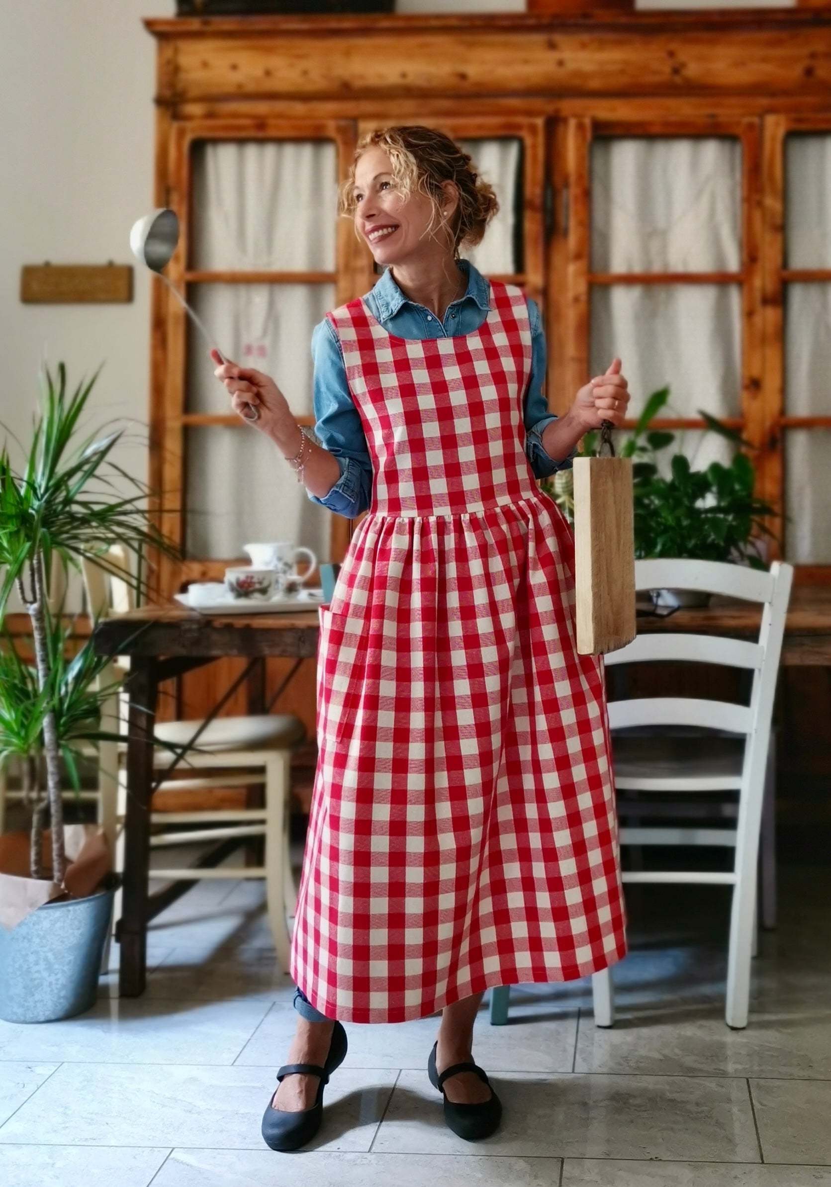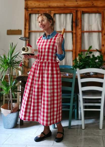 Red Check Cotton Apron