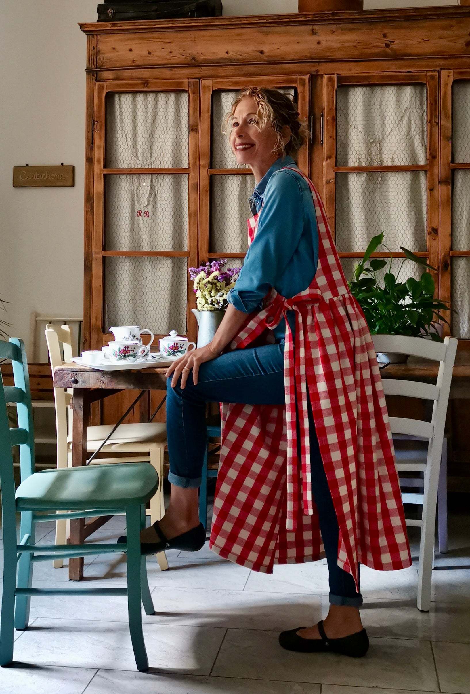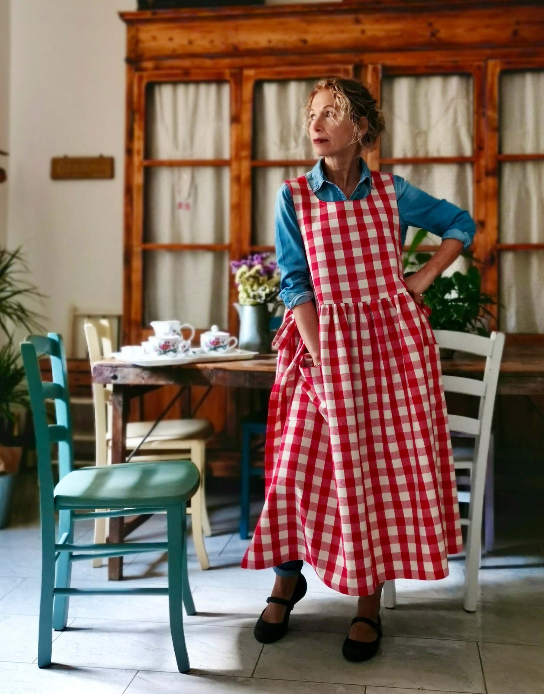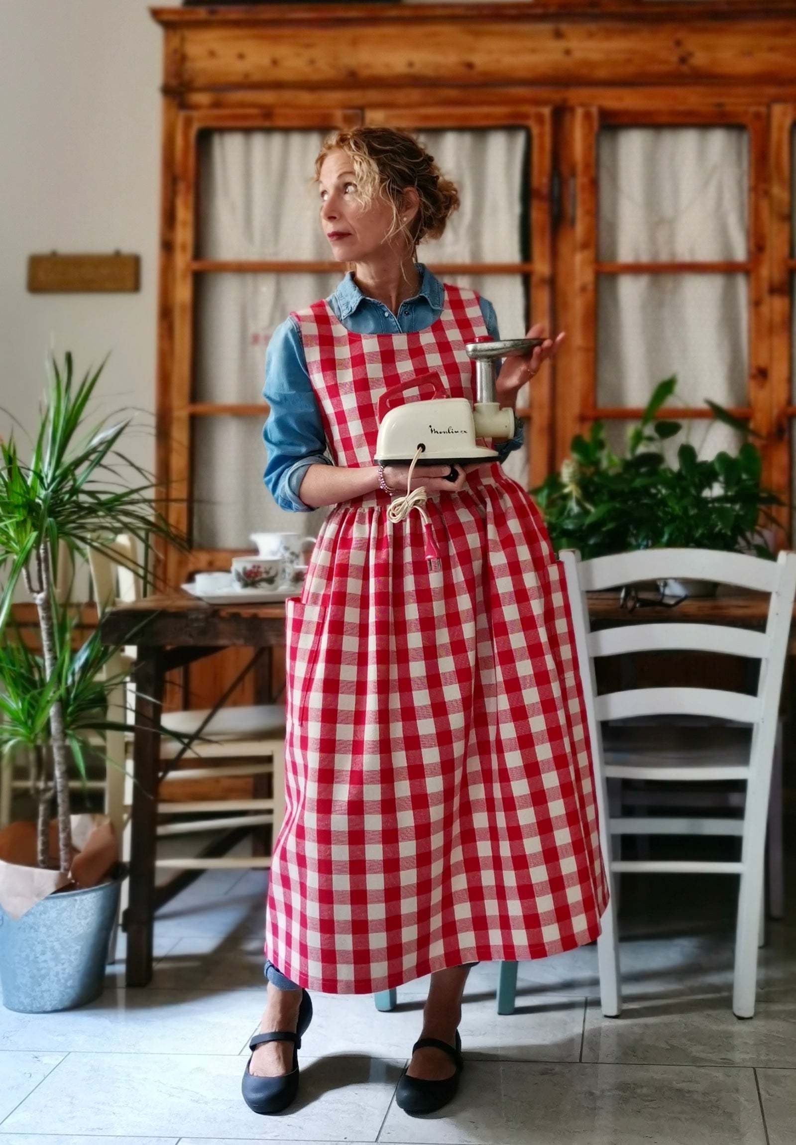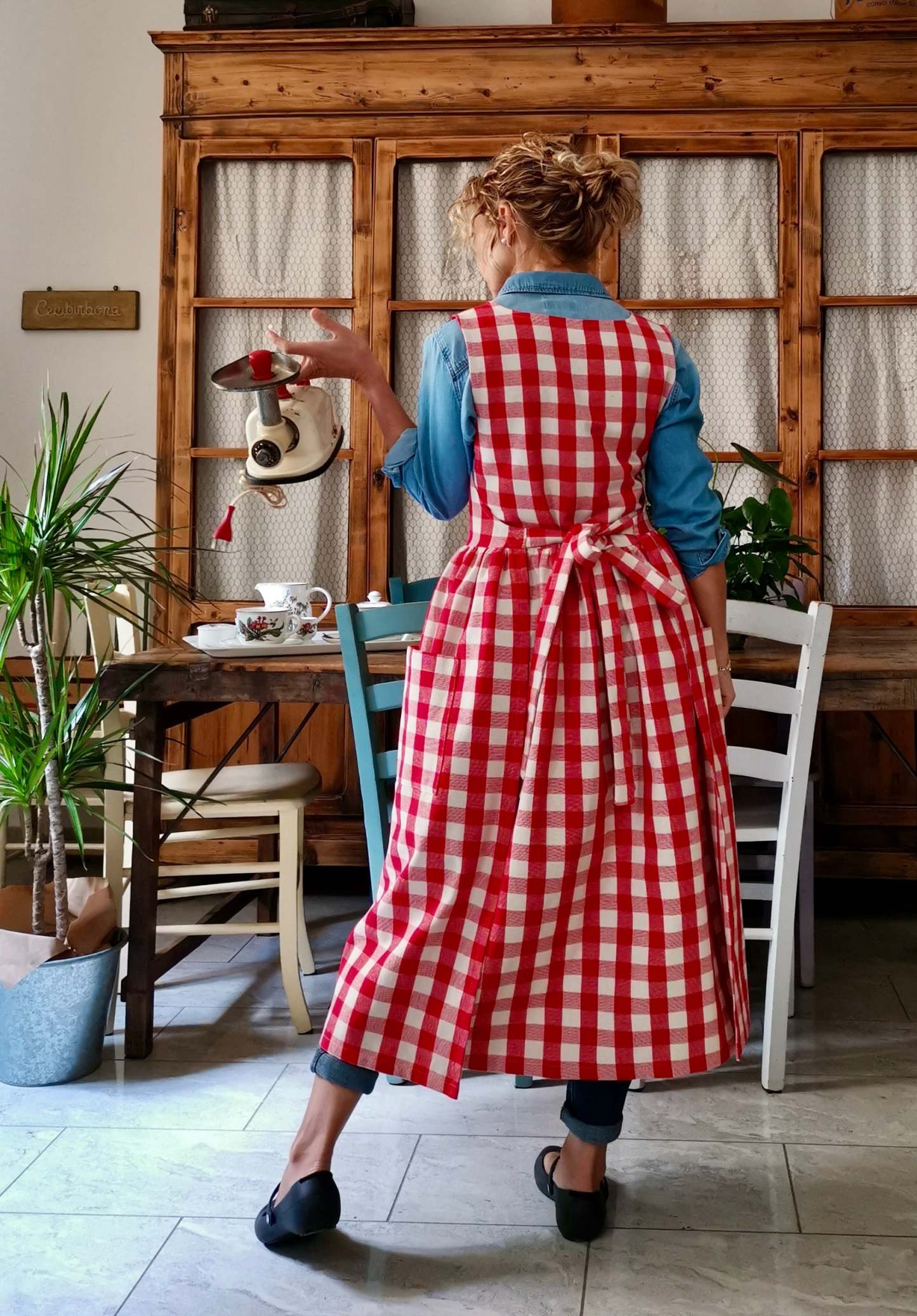 Red Check Cotton Apron
