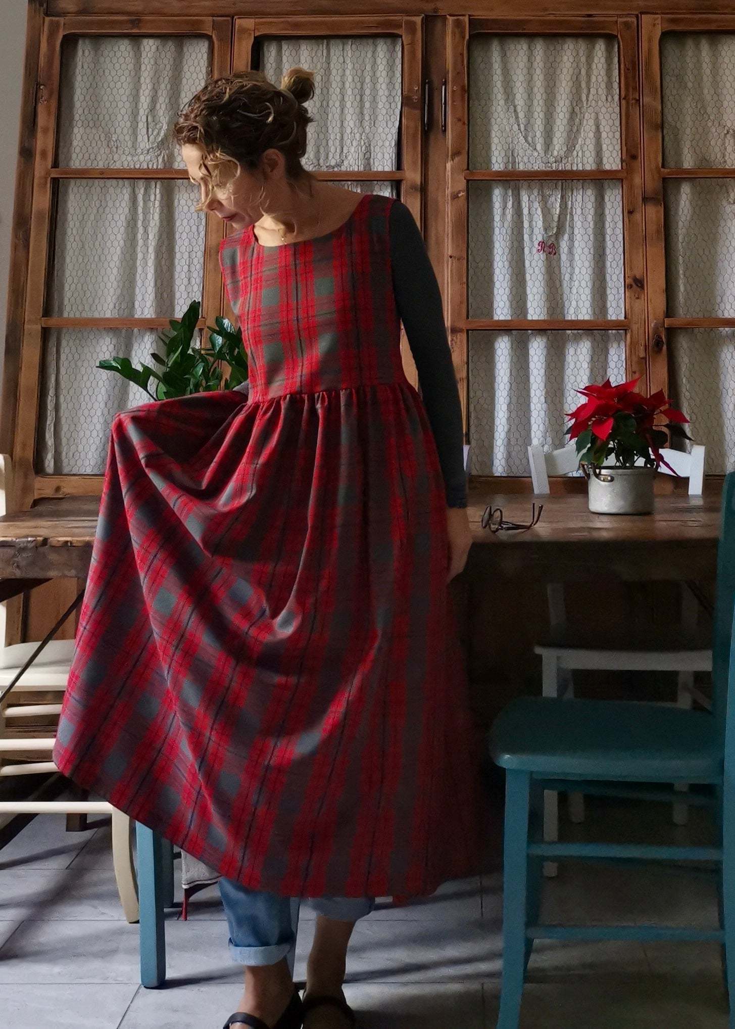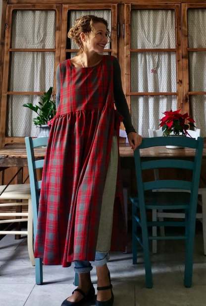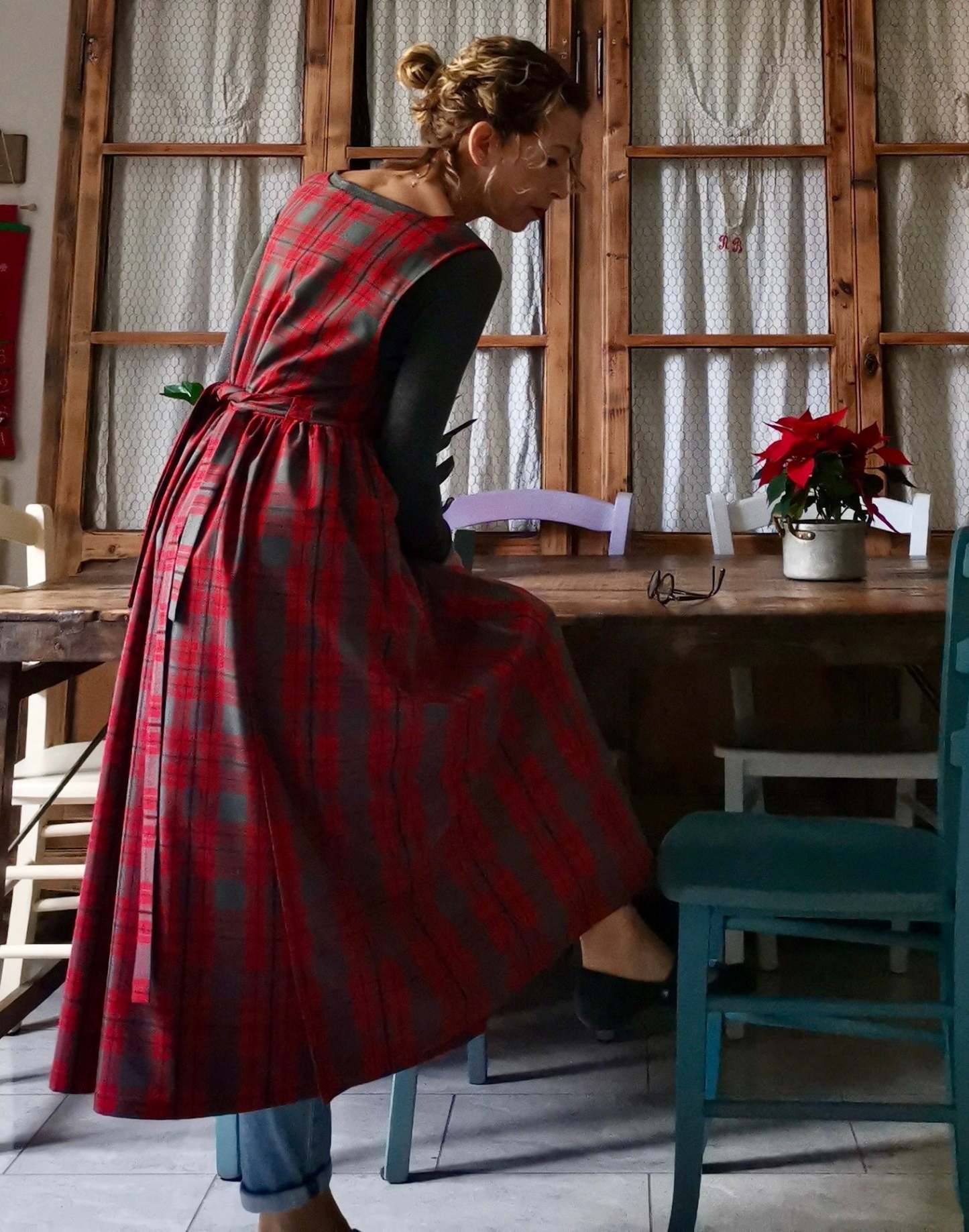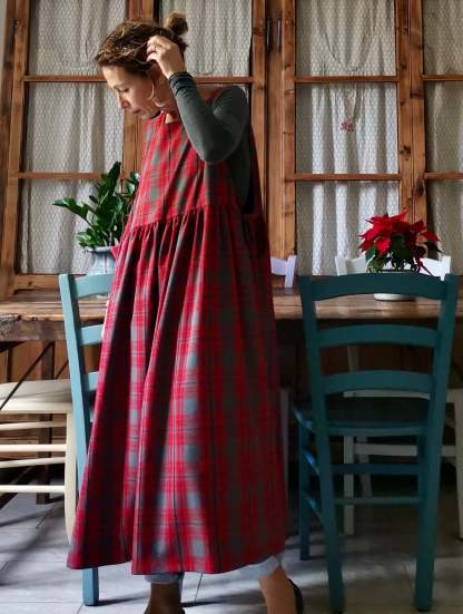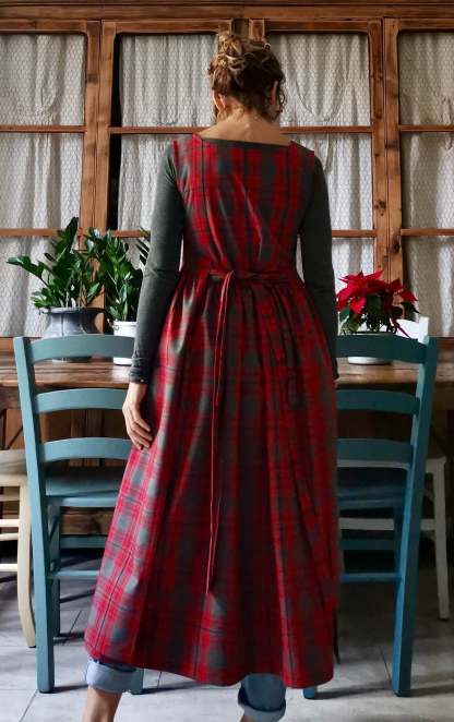 Red and Grey Tartan Apron for Women