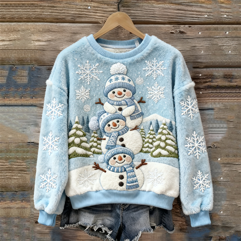 Lovely Snowmen & Snowflakes Cozy Plush Sweatshirt