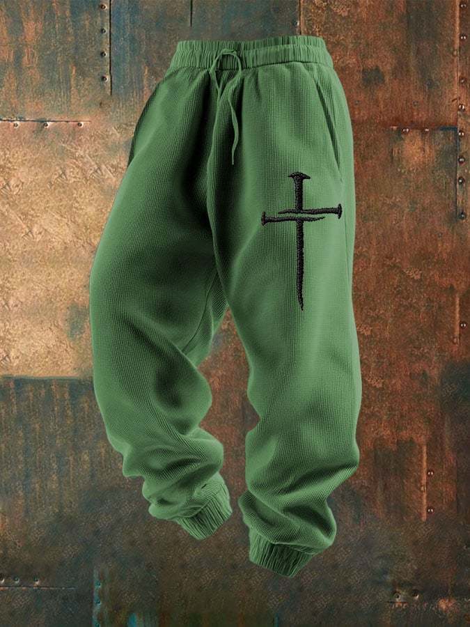 Men's Cross Print Textured Casual Loose Sweatpants