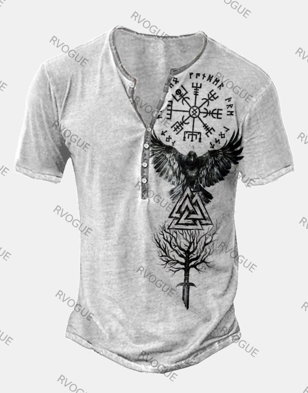 Men's Eagles Printed Short Sleeve Henley T-Shirt