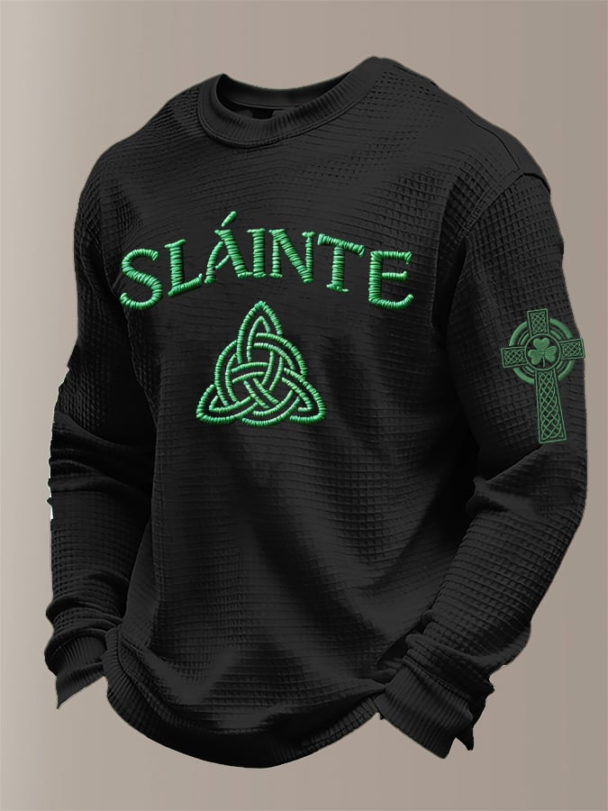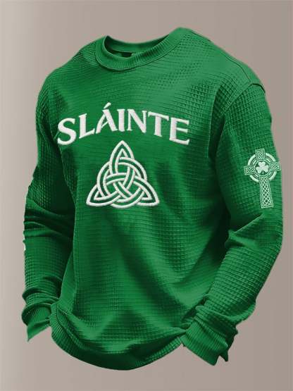 Men'S St Patrick's Day Print Waffle Fabric Long Sleeve T-Shirt