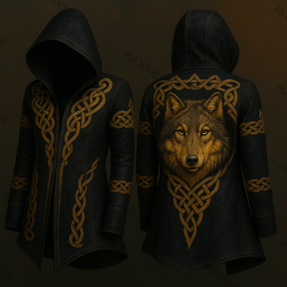 Men's Viking Knot Alpha Wolf Vintage Nordic Hooded Jacket