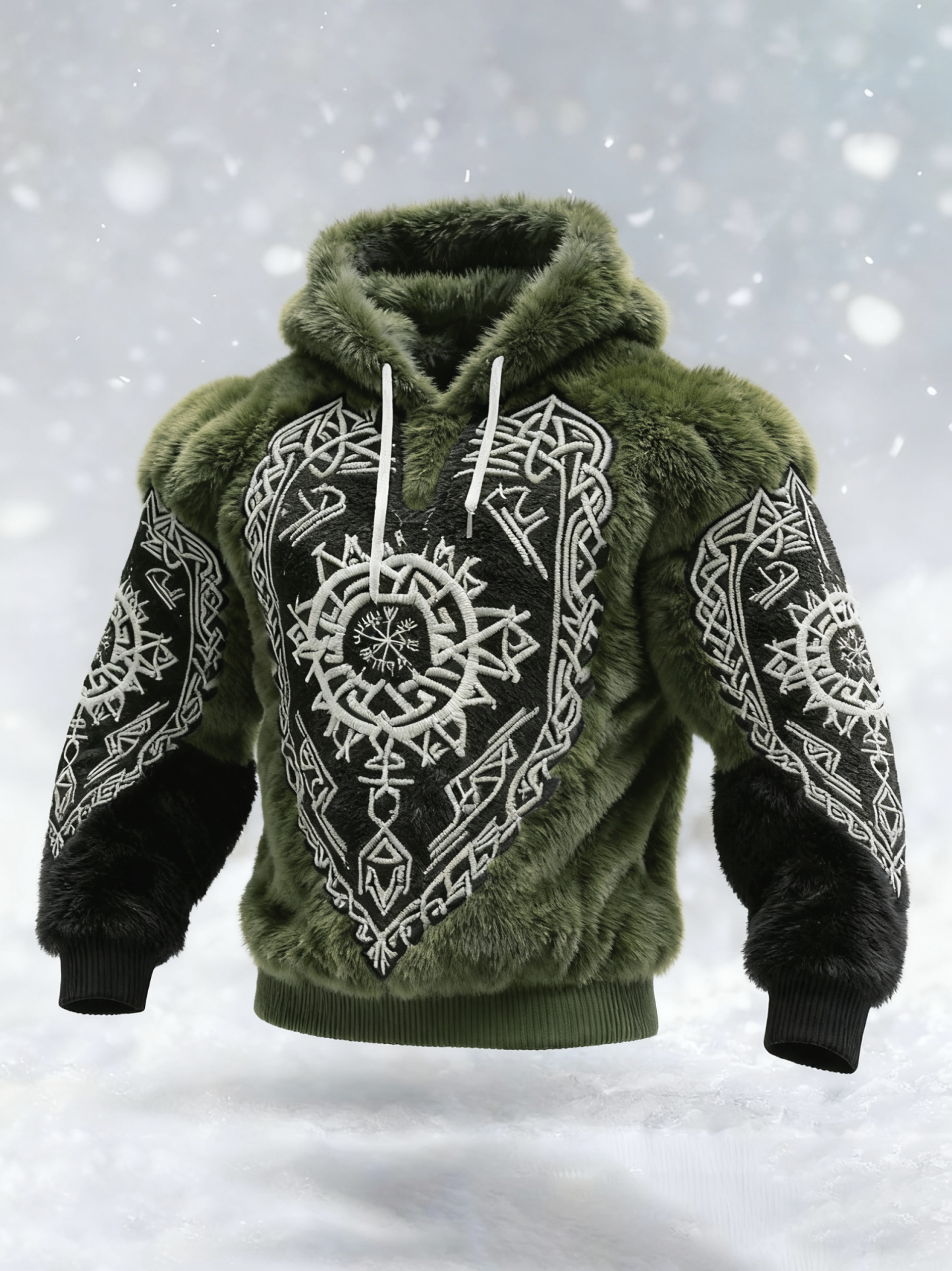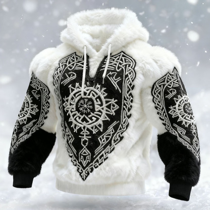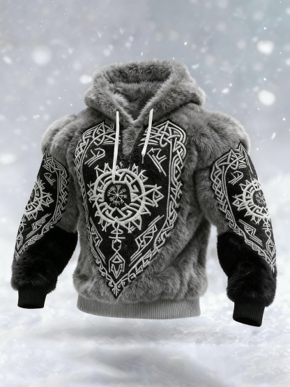 Men's Viking Tribal Jacquard Celtic Inspired Art Plush Warm Hoodie