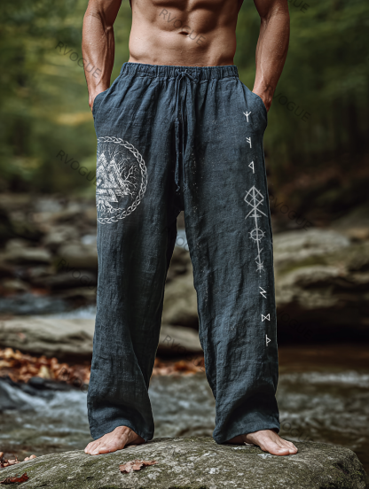 Men's Viking Yggdrasill Rune Tree Of Life Totem Nordic Casual Linen Pants