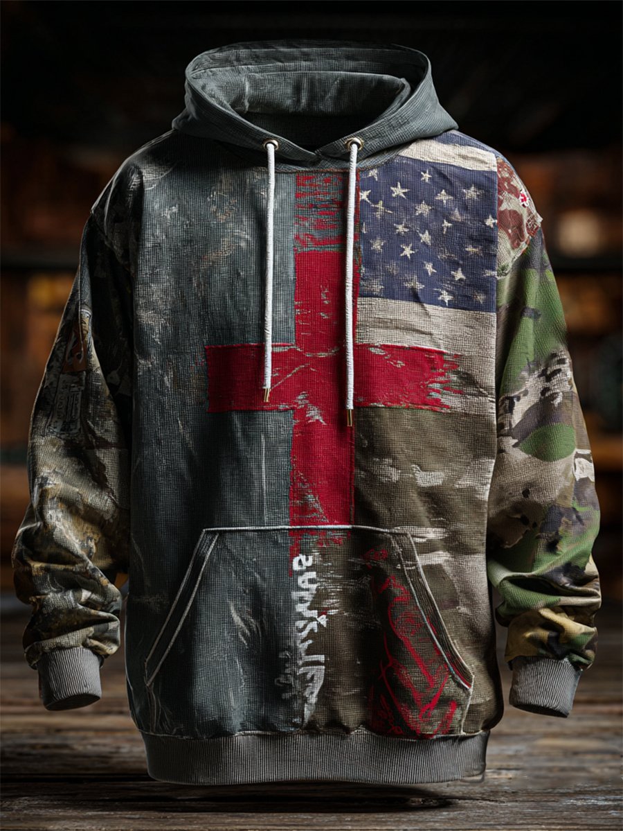 Men's Vintage Casual American Flag Cross Faith Hoodie