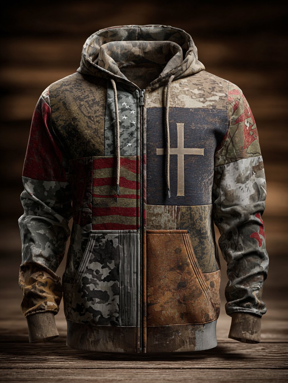 Men's Vintage Casual Faith American Flag Zip Hoodie