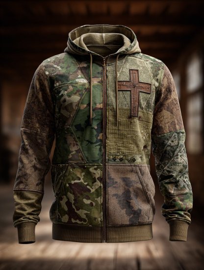 Men's Vintage Casual Faith Camouflage Zip Hoodie