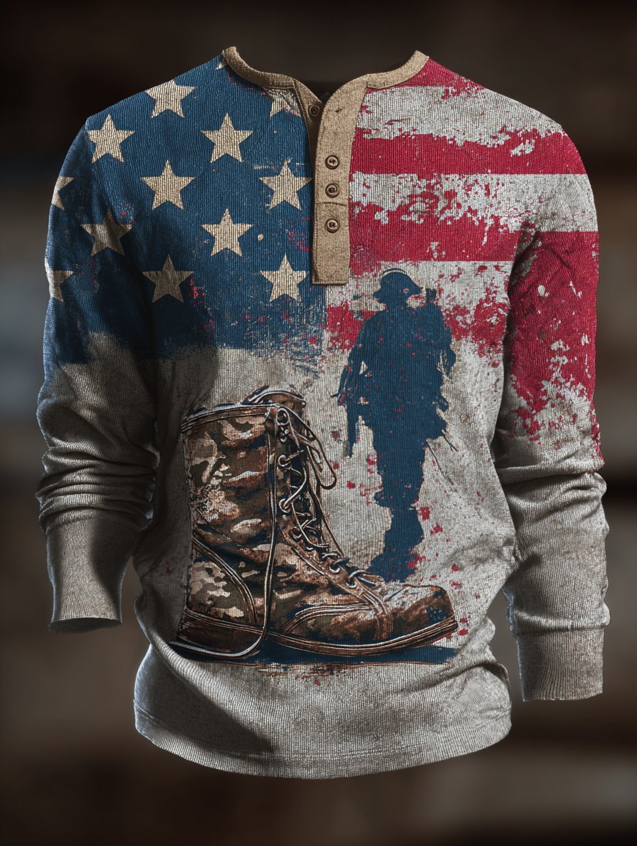Men's Vintage Faith Veterans Day Commemorative Print Long Sleeve Henley