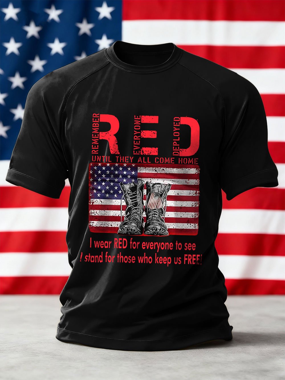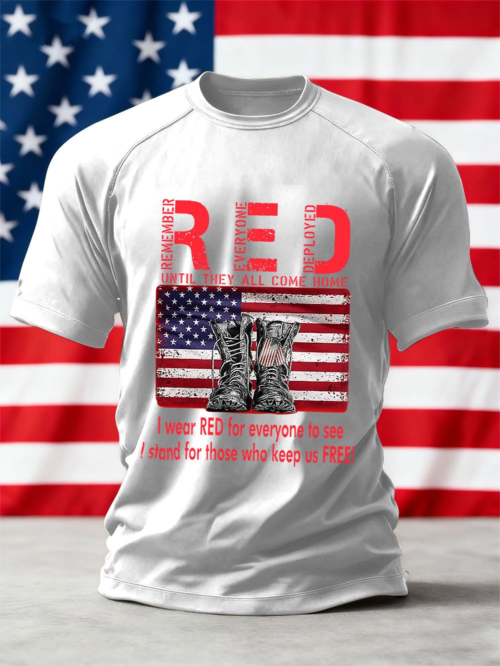 Men's We'll Wear Red to Remember Them Printed Crew Neck Short Sleeve T-shirt