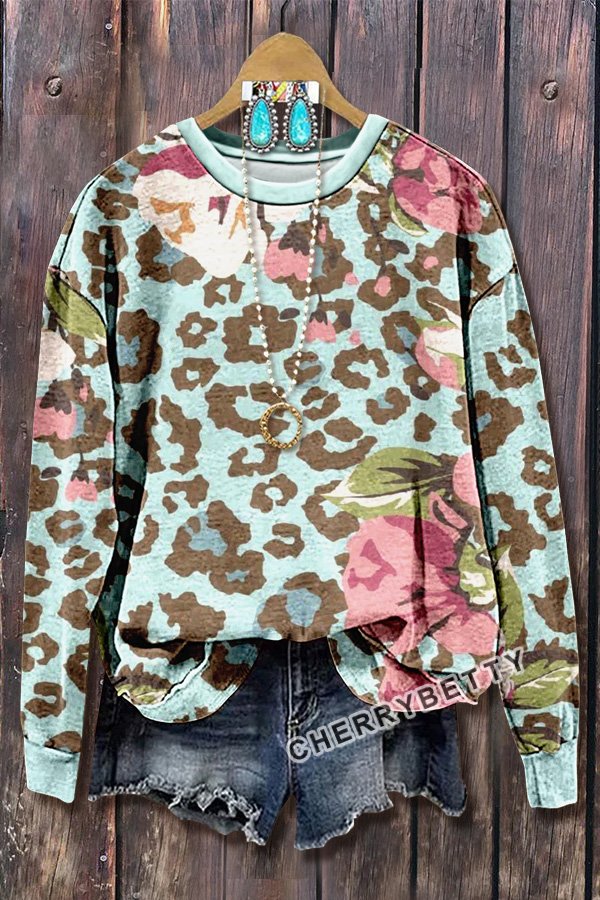 Mixed Leopard Print Long Sleeve Sweatshirt