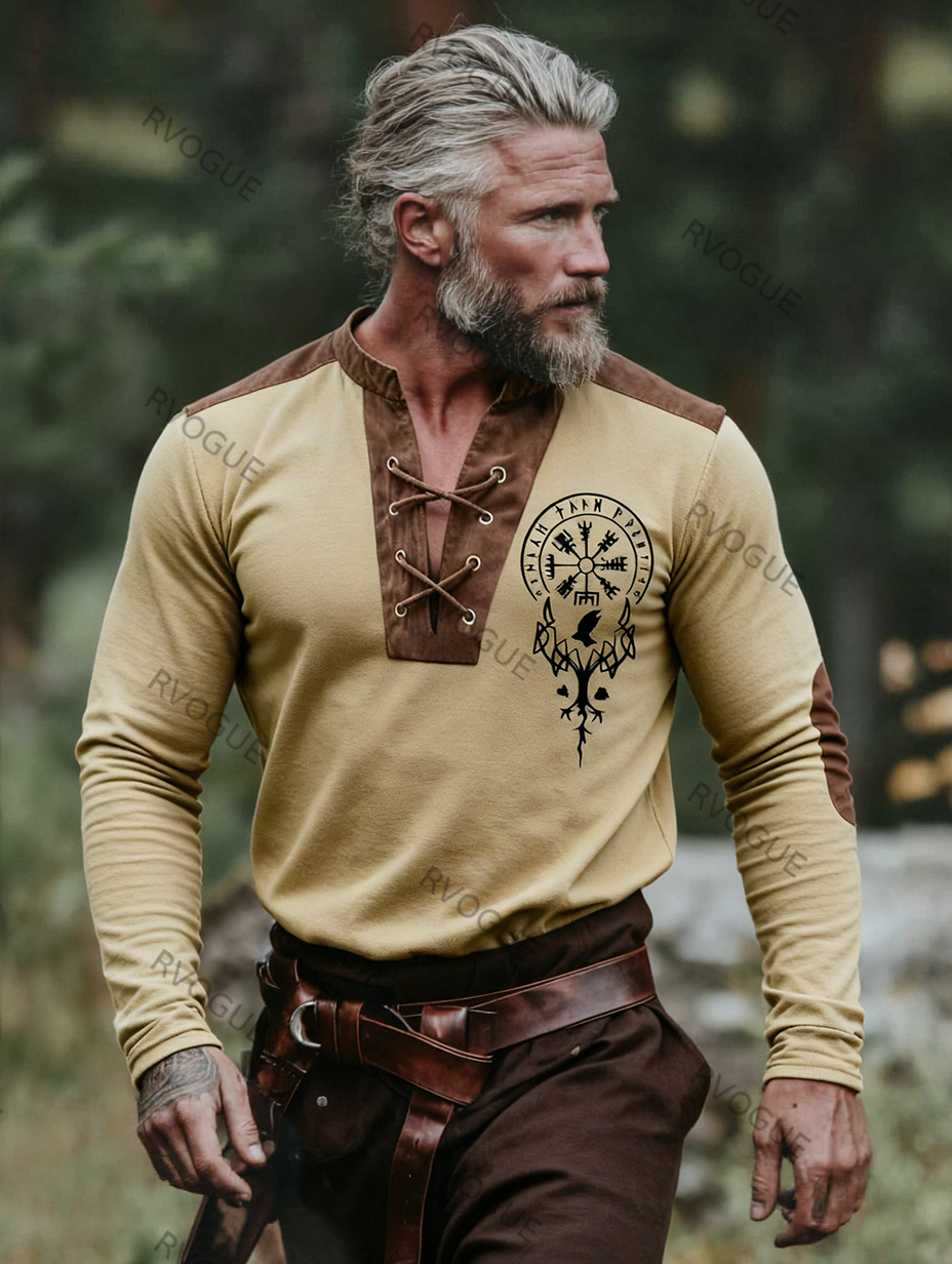 Nordic Viking Raven Vegvísir Yggdrasil Vintage Printed Long-Sleeve Shirt