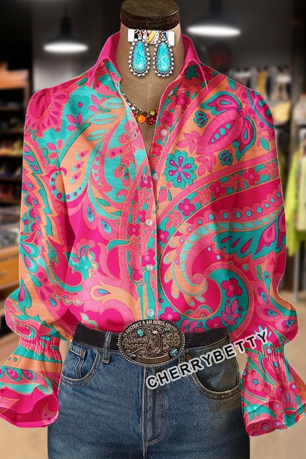 Paisley Floral Print Long Sleeve Top