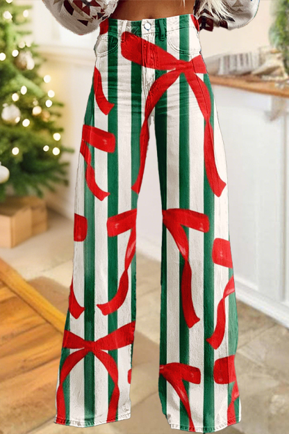 Christmas Striped Bow Wide-Leg Pants
