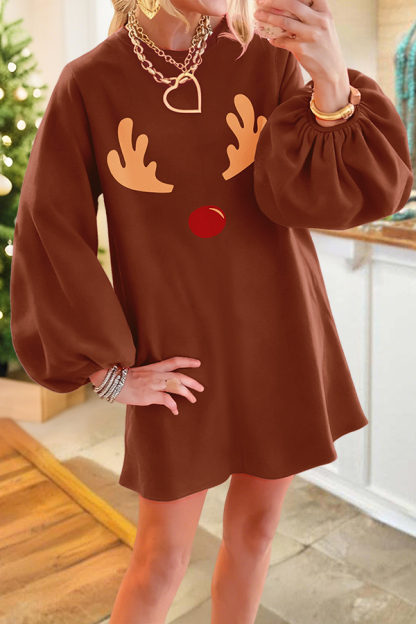 Christmas Reindeer Puff Sleeve Sweatshirt Dress