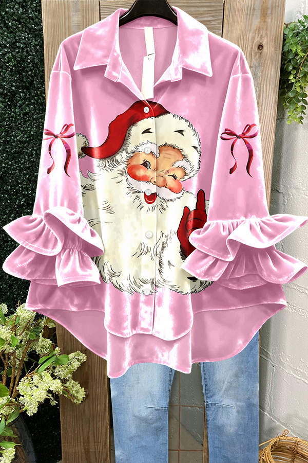 Velvet Santa Claus Bow Ruffle Top