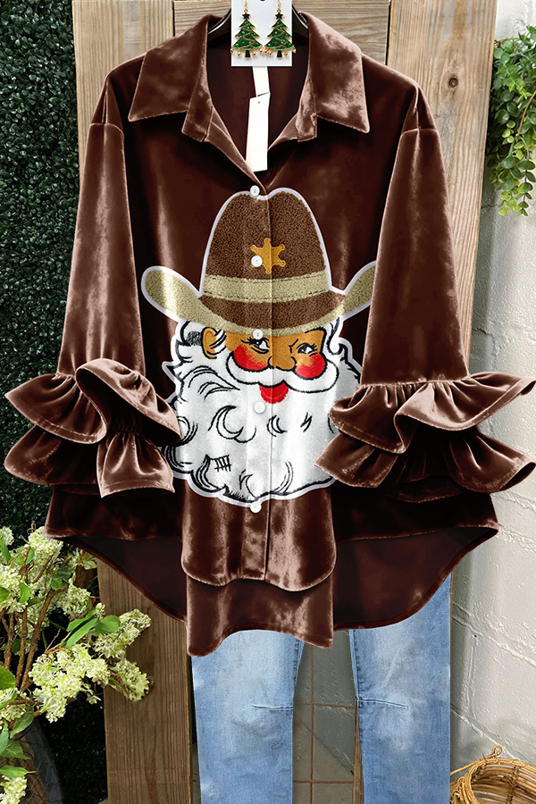 Velvet Cowboy Santa Claus Ruffle Top