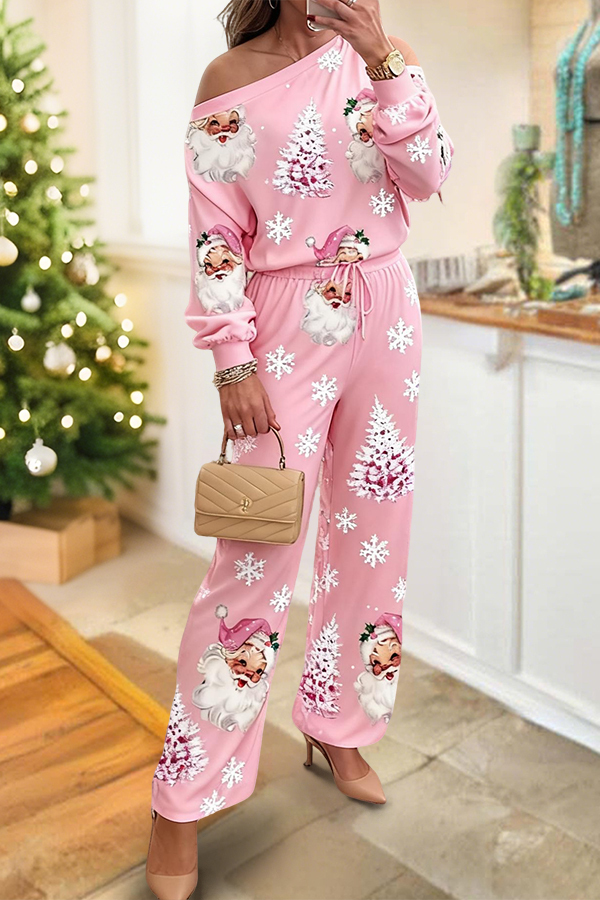 Retro Christmas Tree Santa Claus One-Shoulder Jumpsuit