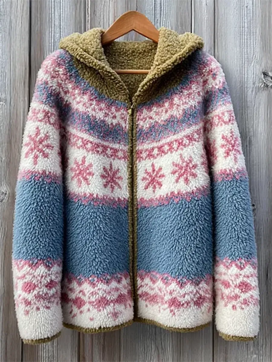 Retro Snowflake Art Print Casual Plush Hood Sweatshirt