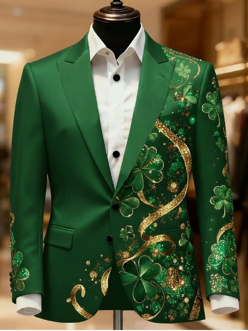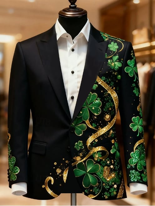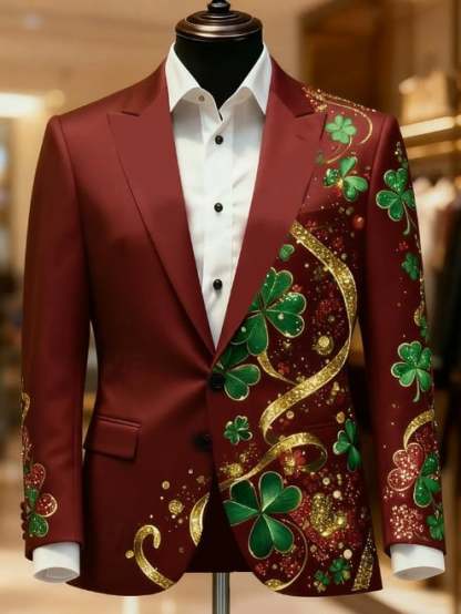 St. Patrick Men's Four Leaf Clover Blazer Jacket Coat Men's Vintage Coat Blazer with Graffiti