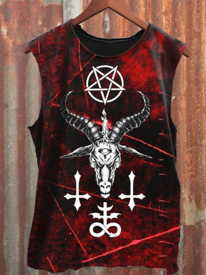 Unisex Vintage Sheep Head Printed Casual Vest