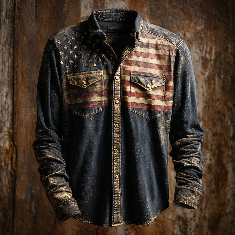 US 250th Anniversary Art Casual Short Sleeve Cotton and Linen Shirt