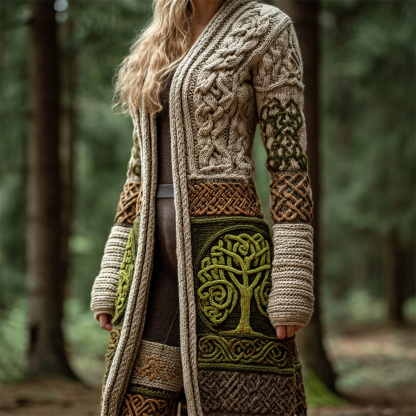 Viking Celtic Tree Art Women's Knitted Long Cardigan
