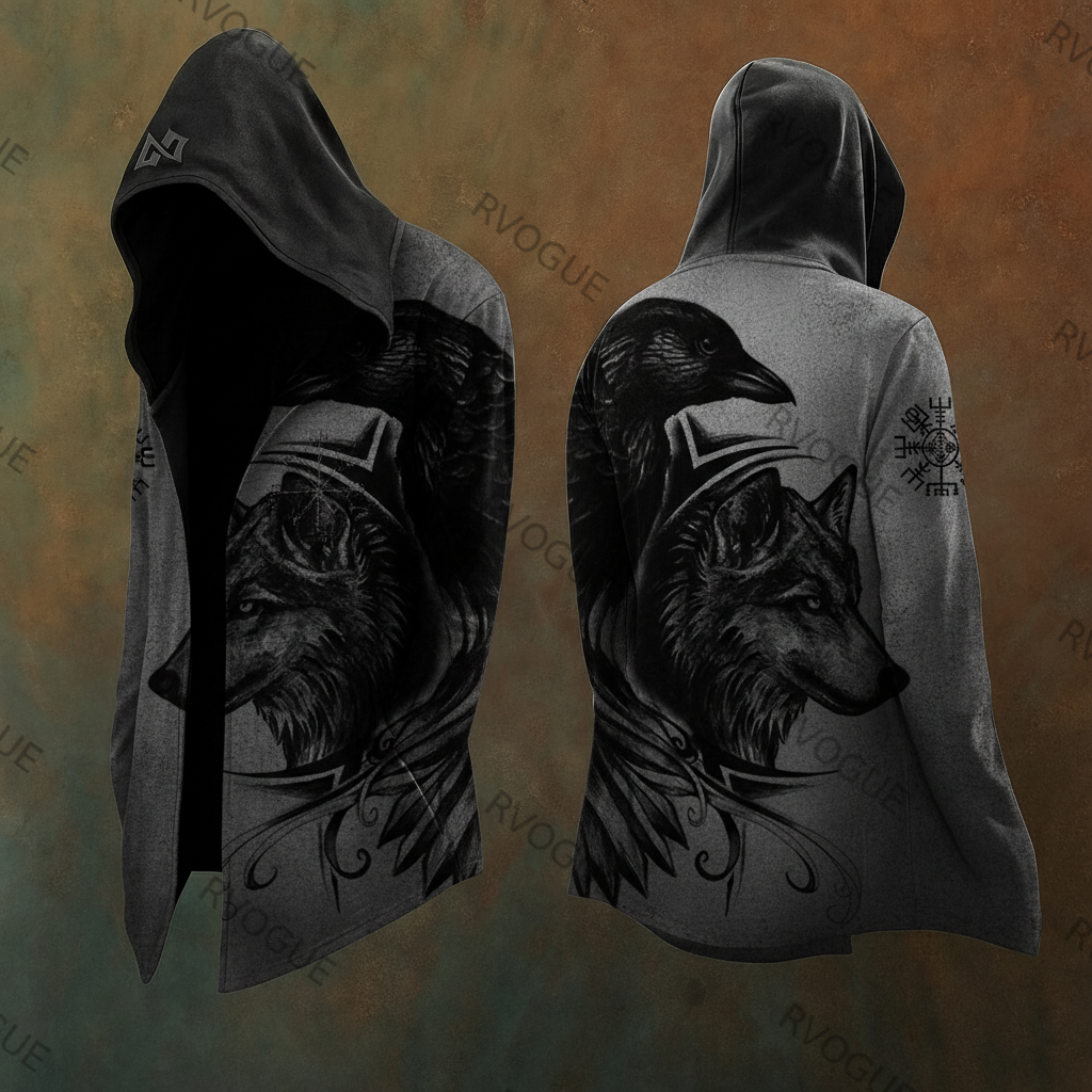 Viking Raven&Wolf Digital 3D Printed Unisex Casual Hooded Jacket