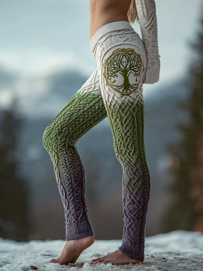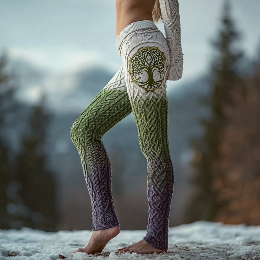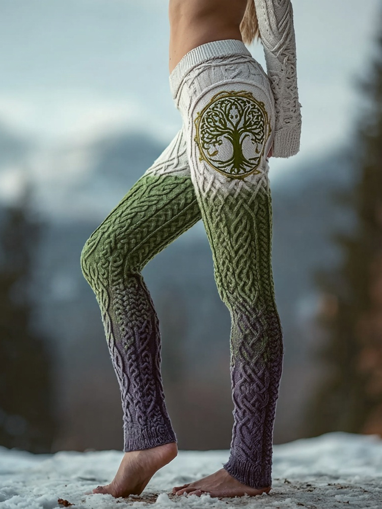 Viking Tree Of Life Celtic Gradient Knit Cozy Leggings