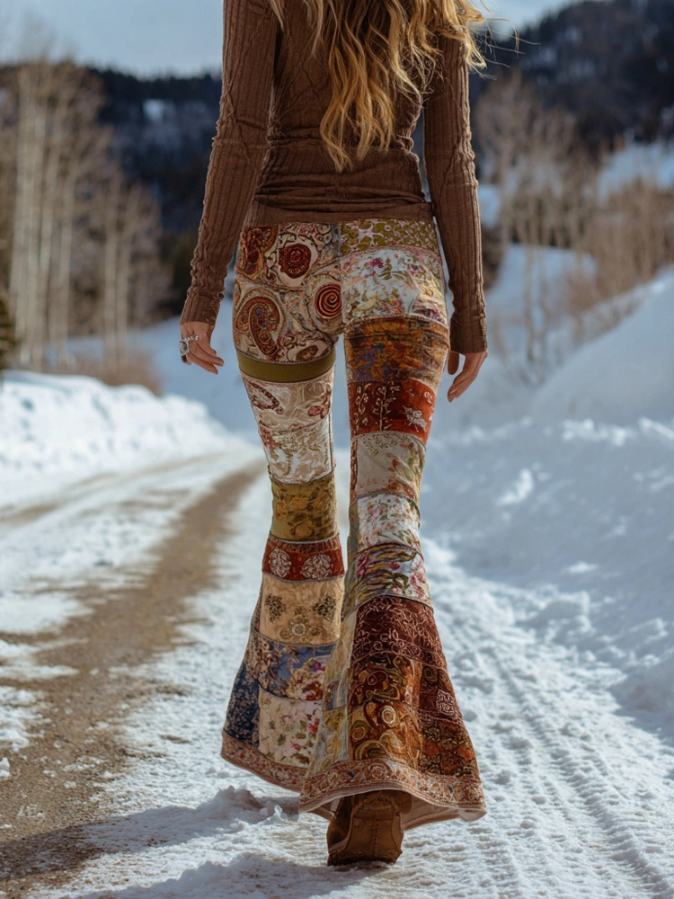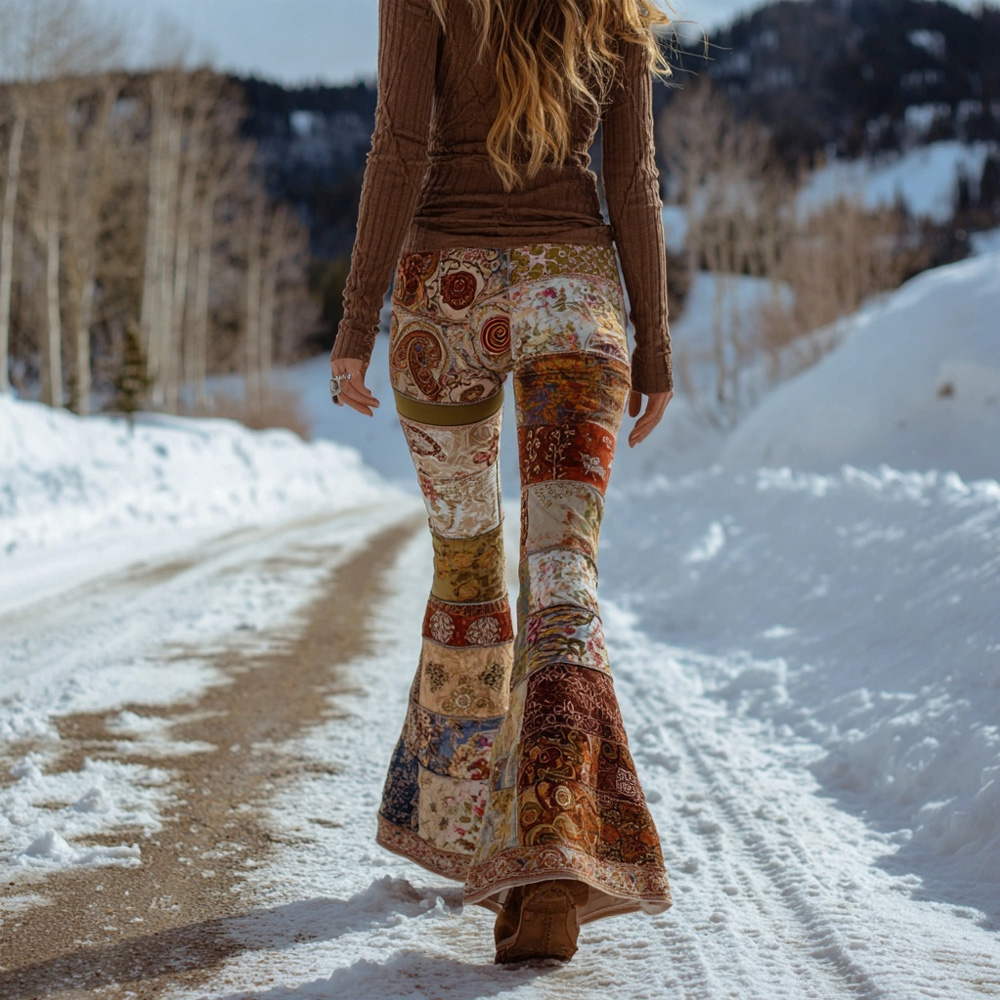Vintage Boho Floral Patchwork Art Comfy Flared Leggings