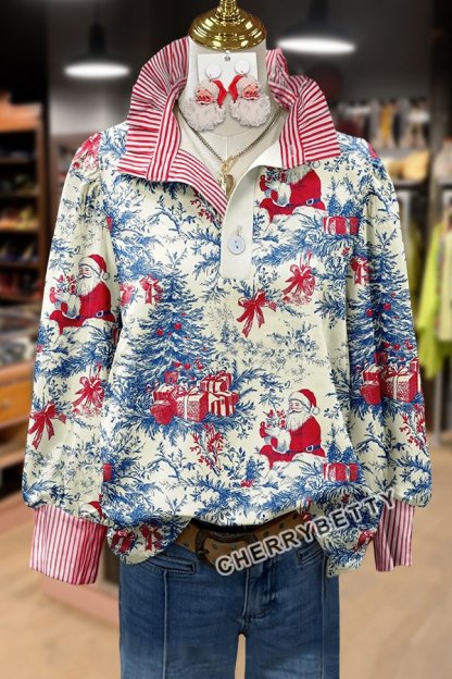 Vintage Christmas Santa Print Long Sleeve Top