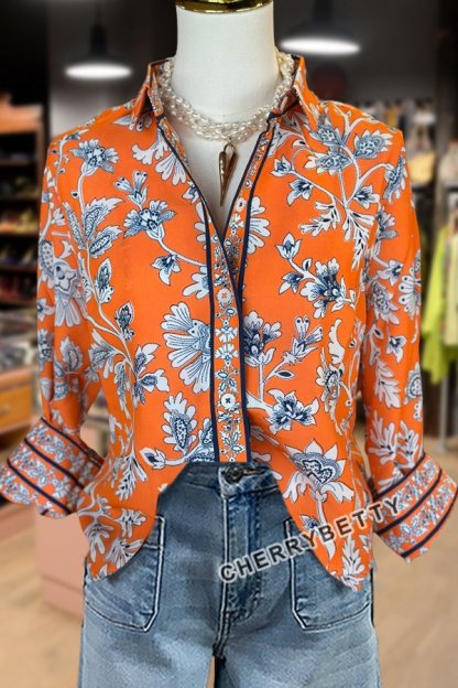 Vintage Floral Print Collared Blouse