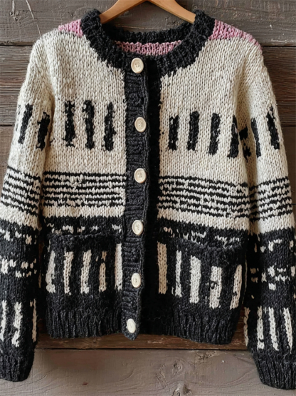 Vintage Musician Piano Keys & Musical Notation Contrast Isle Cardigan